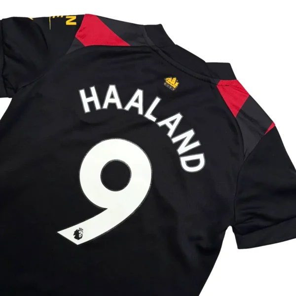 Note IFS : 10/10 – Parfaite condition pour ce maillot extérieur de City floqué Haaland. Taille 7-8 ans.