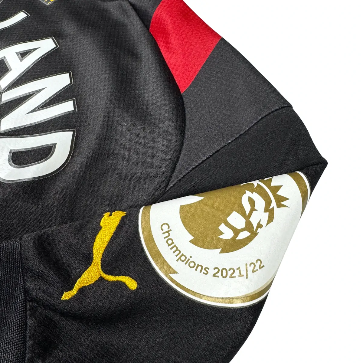 Note IFS : 9/10 – Maillot de Manchester City 2022-23 avec le patch Premier League Champions 2021/22 sur la manche et le flocage officiel Haaland, celui qui a marché sur toute l’Angleterre cette saison-là. Une pièce propre, récente, parfaite pour les fans qui veulent le City version machine de guerre sans chipoter.