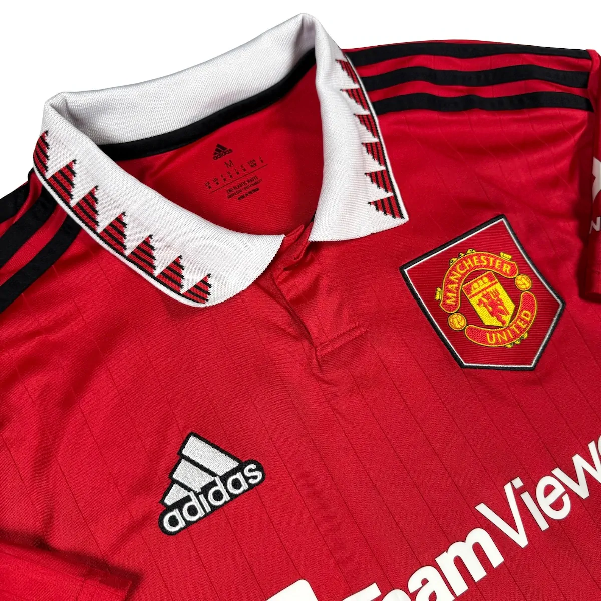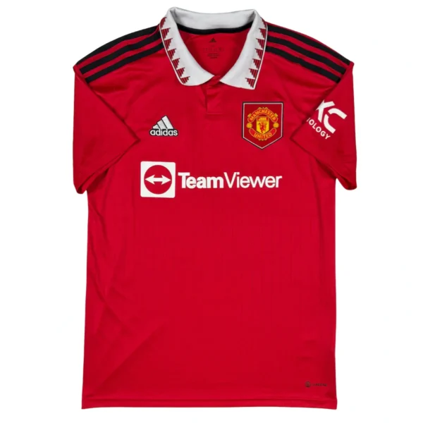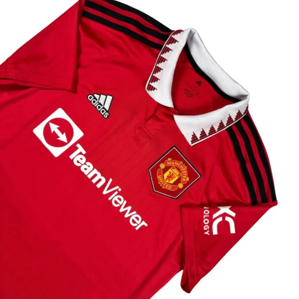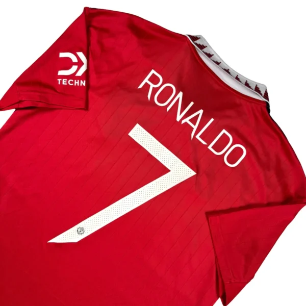 Note IFS : 10/10 – Maillot comme neuf, rien qu’avec le flocage officiel version coupe, ce maillot vaudra plus dans le futur, le dernier de CR7 à Manchester ! Superbe design par Adidas qui sort des sentiers battus, splendide !