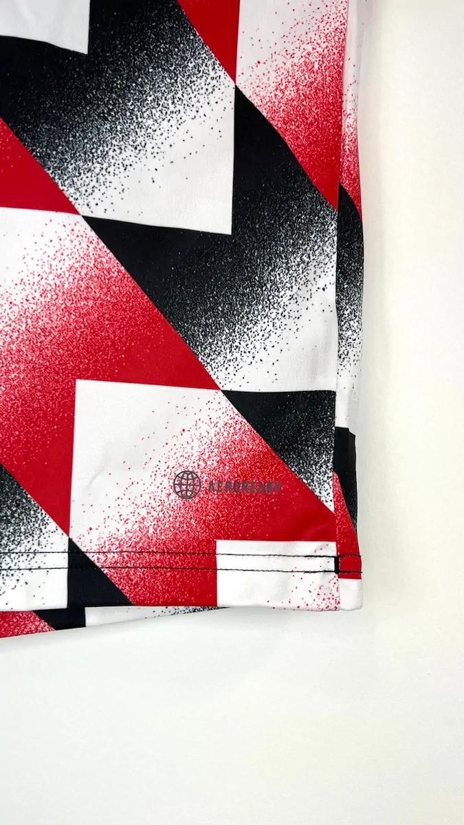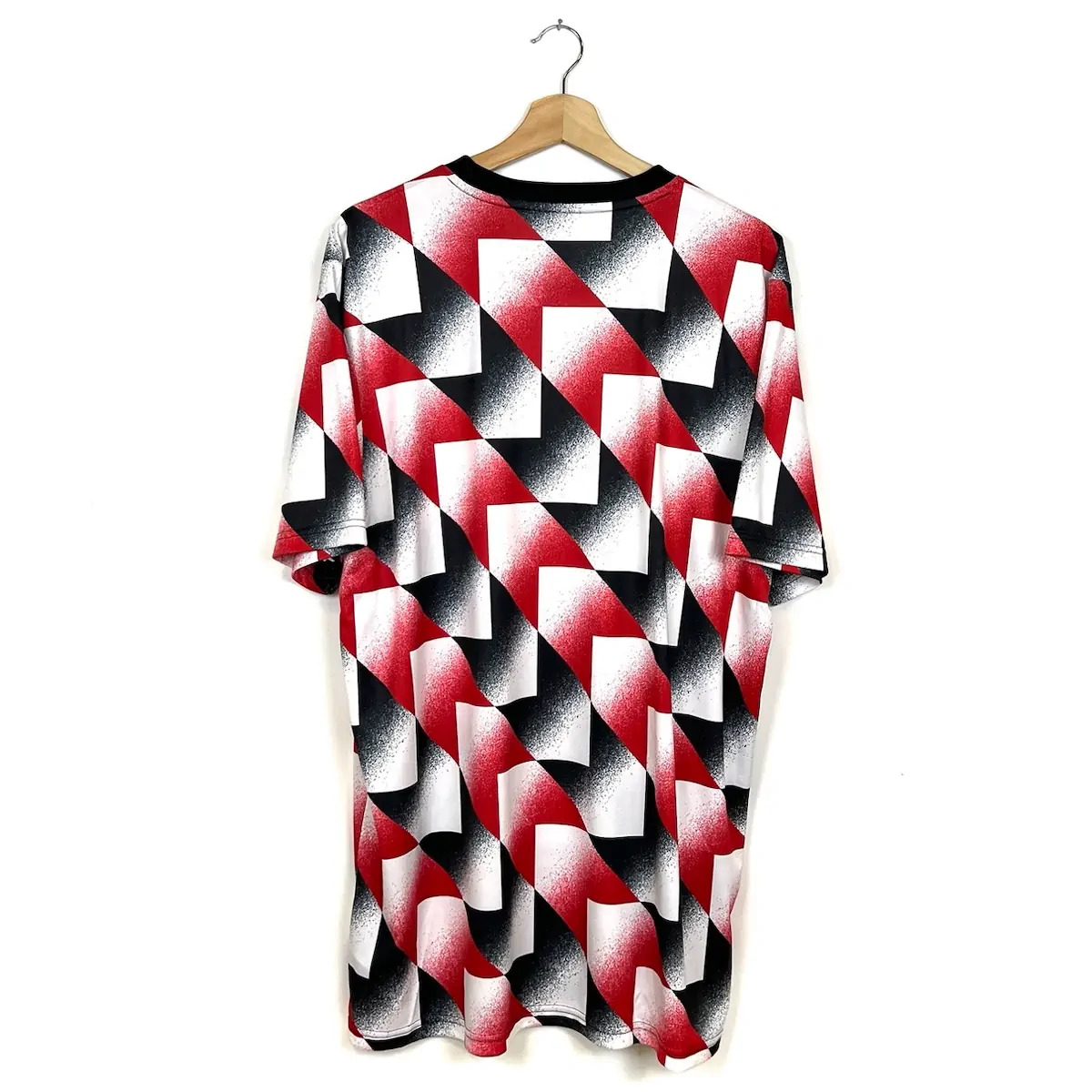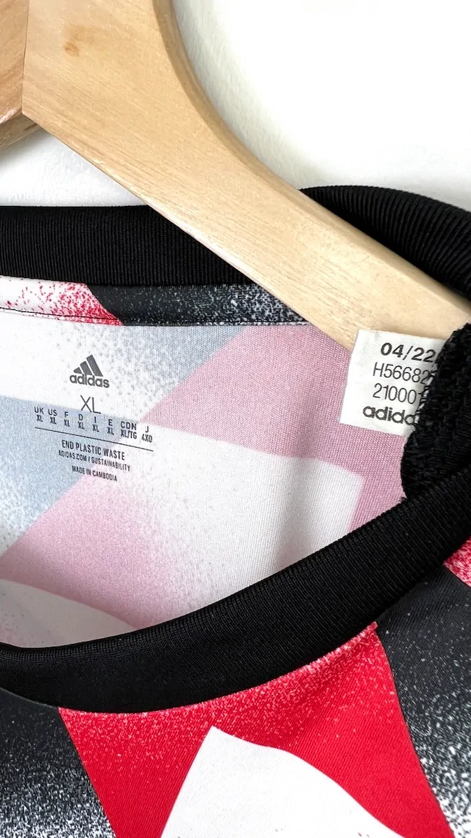 Note IFS : 10/10 – Parfait état, comme neuf. Haut de pré-match porté par les joueurs avant les matchs de Premier League. Le dernier porté par Ronaldo lors de son deuxième passage à Manchester. Le design sort de l’ordinaire, un vrai travail par Adidas.