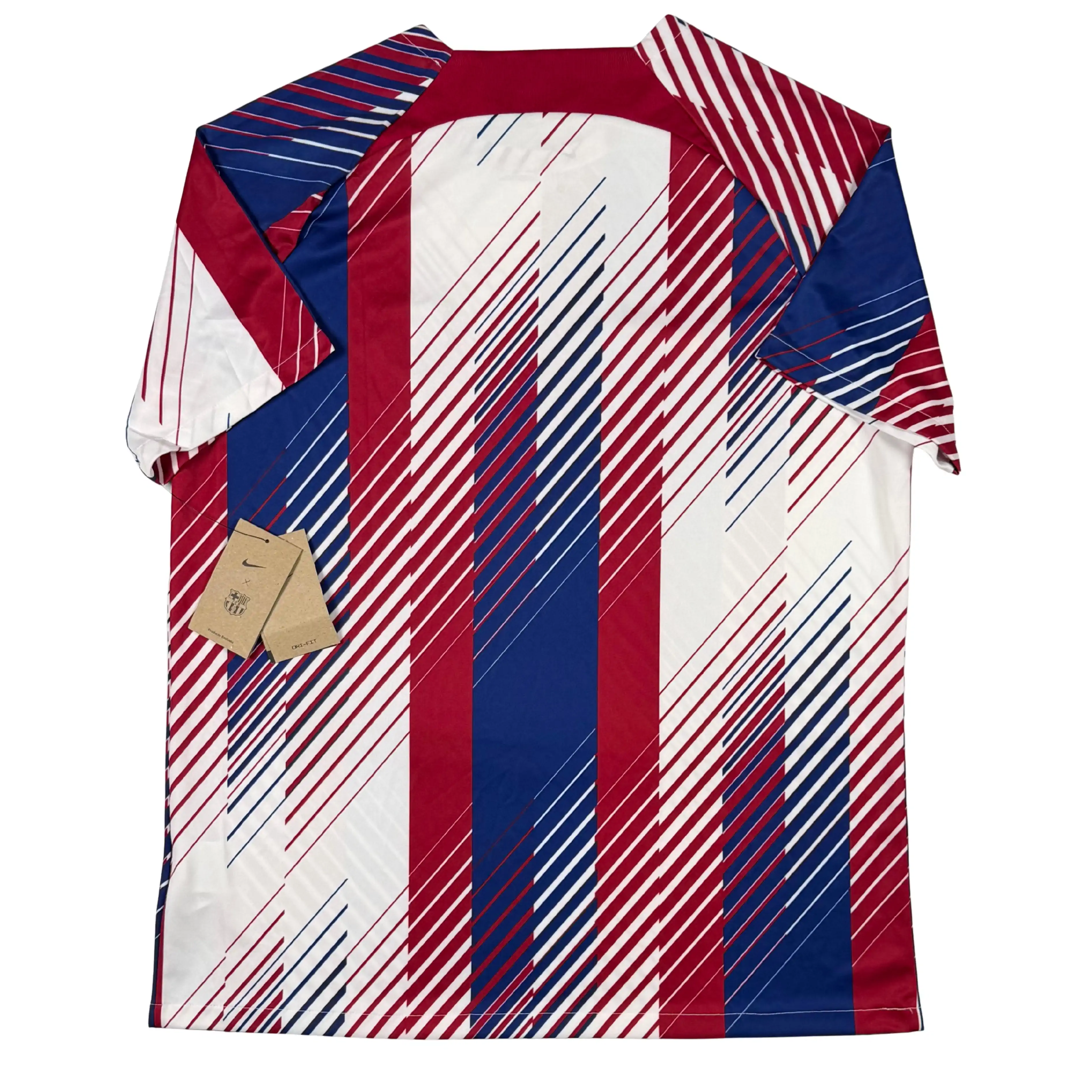 Note IFS : Neuf + étiquettes – Parfaite condition pour ce maillot d’avant match du Barça bien bariolé ! On aime ou on aime pas, mais, dans tous les cas, ça ne laissera personne indifférent.