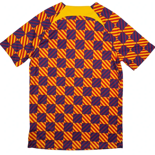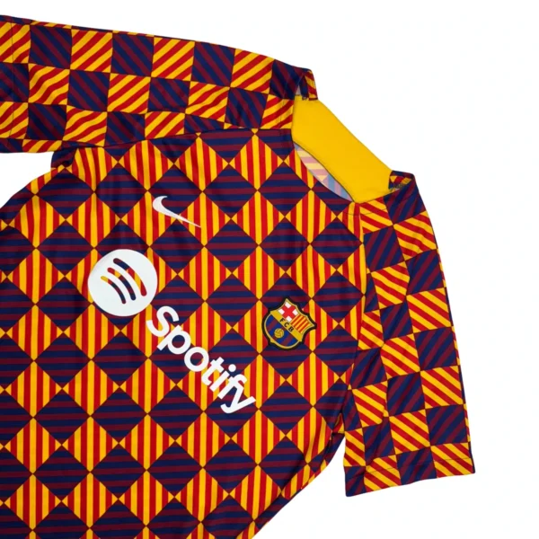 Note IFS : 10/10 – Parfaite condition pour ce maillot d’avant match du Barça bien bariolé ! On aime ou on aime pas, mais, dans tous les cas, ça ne laissera personne indifférent.