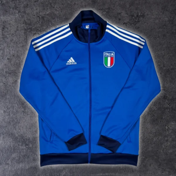 Note IFS : 10/10 – Parfaite condition pour cette veste de l’Italie. Sobre et efficace de par ses couleurs, cette veste Adidas se porte très facilement avec un jeans.