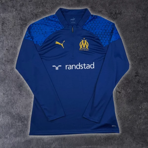 Note IFS : 10/10 – Parfaite condition. Sweat d’entraînement de l’OM où tous les éléments sont floqués.