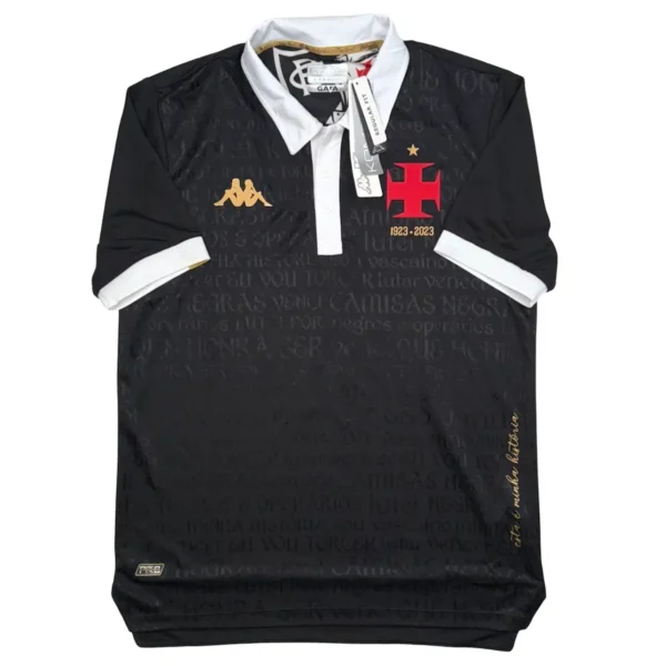 Note IFS : Neuf + étiquettes – Le troisième maillot célèbre les 100 ans des Camisas Negras, champions de 1923, avec un design rétro noir et des détails blancs, rouges et dorés. Il intègre des phrases d’une chanson emblématique des fans. Floqué de Dimitri Payet, ce maillot est en version pro avec une coupe plus ajustée. Magnifique !