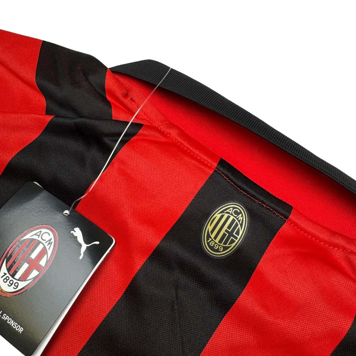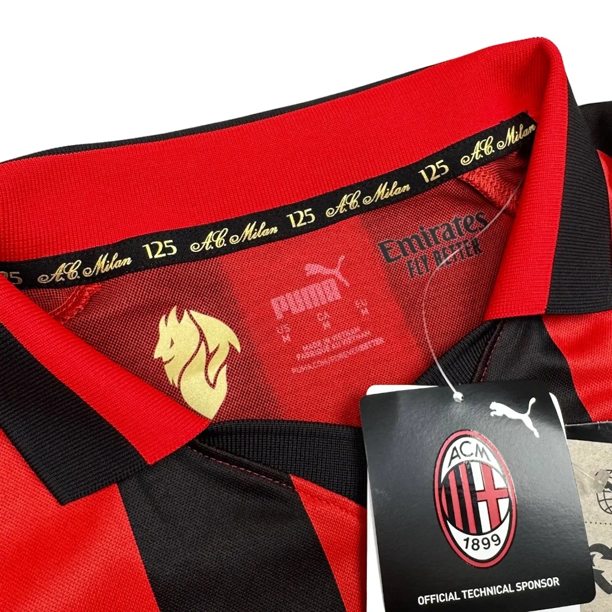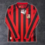 Note IFS : Neuf + étiquettes – Pour fêter ses 125 ans, l’AC Milan sort un maillot collector qui sent l’histoire à plein nez. Rayures larges, ancien blason 1899, col polo rétro… un vrai clin d’œil aux débuts du club. Édition imitée portée que lors d’un seul match pendant la saison. Une pièce culte, taillée pour les vrais Rossoneri.