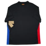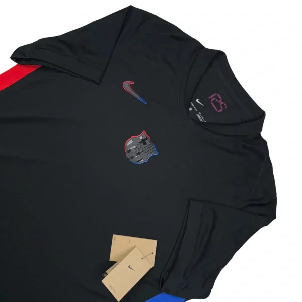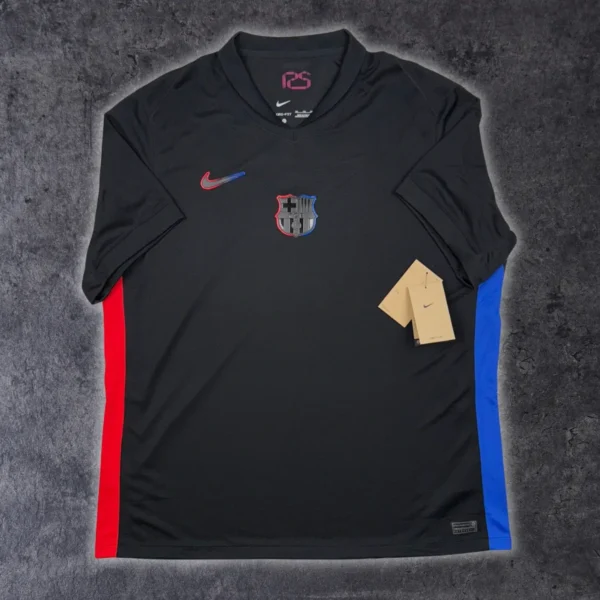 Note IFS : Neuf + étiquettes – Extérieur du Barça 2024/25 signé Nike, full black avec détails blaugrana asymétriques sur les côtés et blason réfléchissant entouré de rouge et bleu. Un design futuriste qui reprend le style noir déjà culte des saisons passées. Tout neuf et sold out quasiment partout !