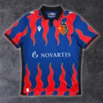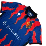 Note IFS : 10/10 – Ce maillot du FC Bâle, signé Macron, rend hommage à la ville avec un design inspiré du drapeau : flammes rouges sur fond bleu, basilic en relief dans le tissu, et détails dorés évoquant les œufs de la créature mythique. À l’intérieur du col, on retrouve le message « Brenne für den FCB »(« Brûle pour le FCB », c’est une expression symbolique qui veut dire : mouille le maillot). Un maillot qui mixe parfaitement tradition locale et style moderne. Un régal visuel !