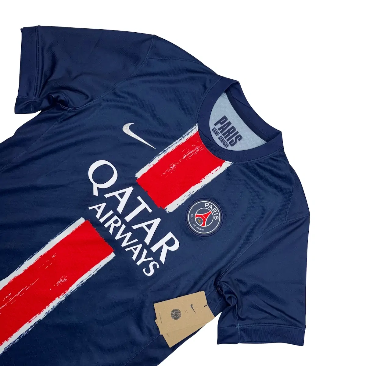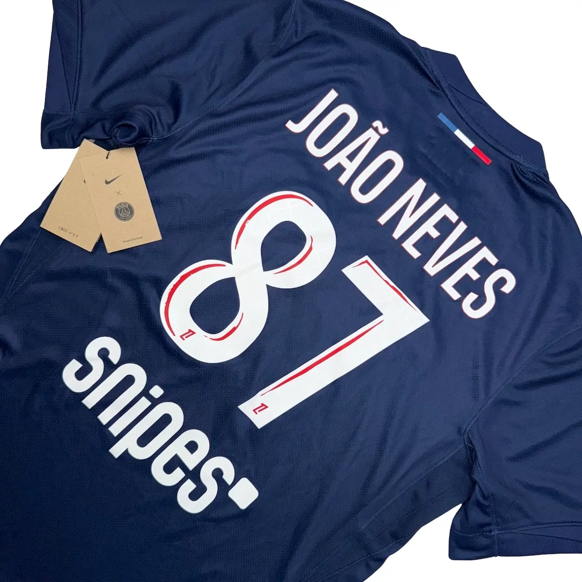Note IFS : Neuf + étiquettes – Maillot domicile du PSG floqué João Neves, état neuf avec étiquettes. Pièce déjà introuvable en boutique officielle, encore plus avec ce flocage du jeune crack portugais fraîchement arrivé à Paris. Collector, parfait pour les fans et investisseurs maillots, plus sûr que la crypto mon copain.