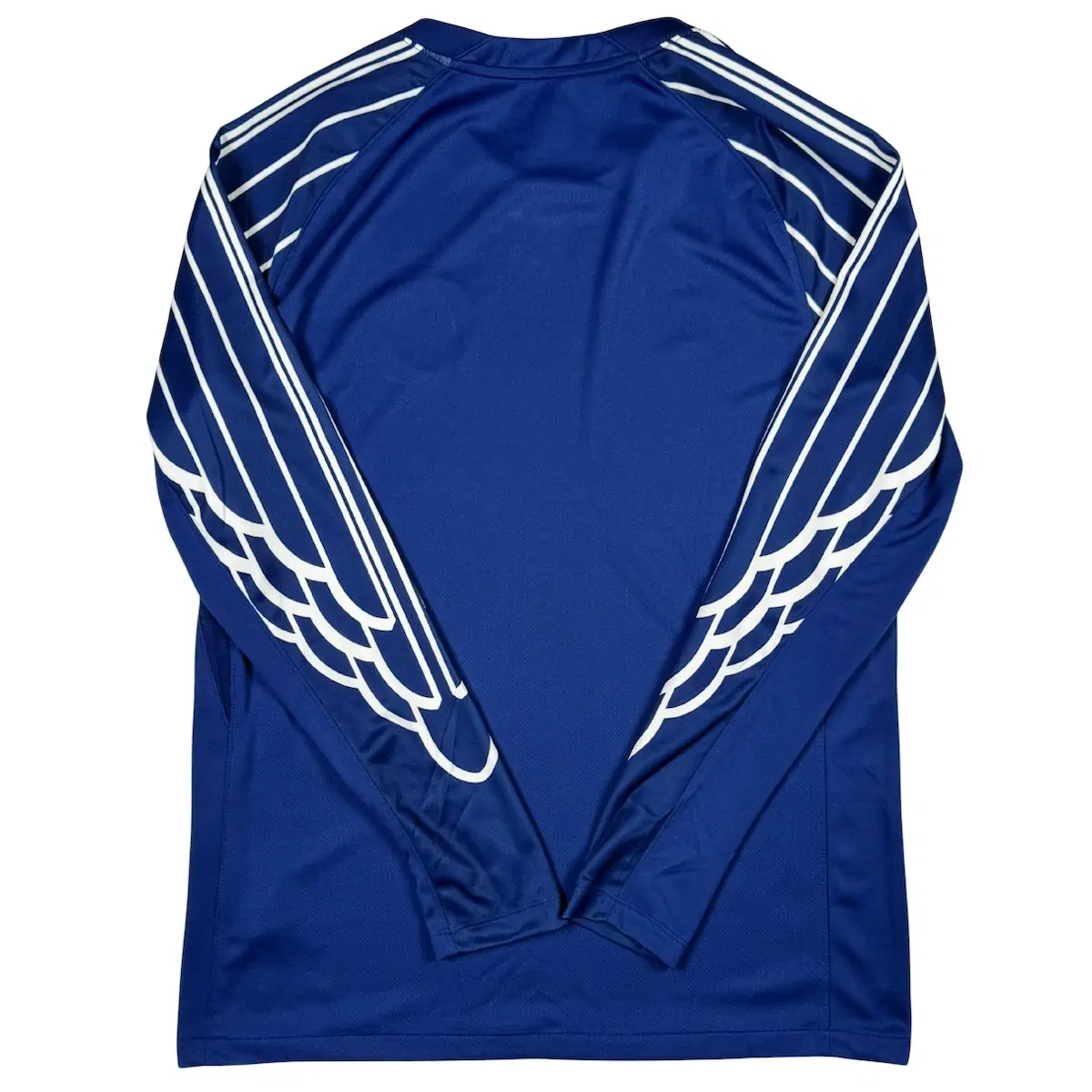 ncroyable et rare maillot du PSG en manches longues, avec les fameuses ailes Jordan qui longent entièrement les manches. Modèle neuf avec étiquettes, introuvable et sold out partout. Une pièce déjà collector, d’autant plus précieuse depuis la victoire du PSG en Champions League et que Dembouz à pris le Ballon d’Or. Un classique qui ne fera que prendre de la valeur, surtout si tu laisse les étiquettes sur le maillot.