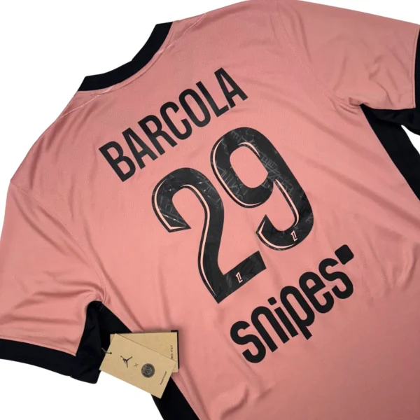 Note IFS : Neuf + étiquettes – Maillot Third du PSG floqué Barcola, état neuf avec étiquettes. Pièce difficile à trouver en boutique officielle depuis le sacre en Ligue des Champions. Collector, parfait pour les fans et investisseurs maillots, plus sûr que la crypto mon copain.