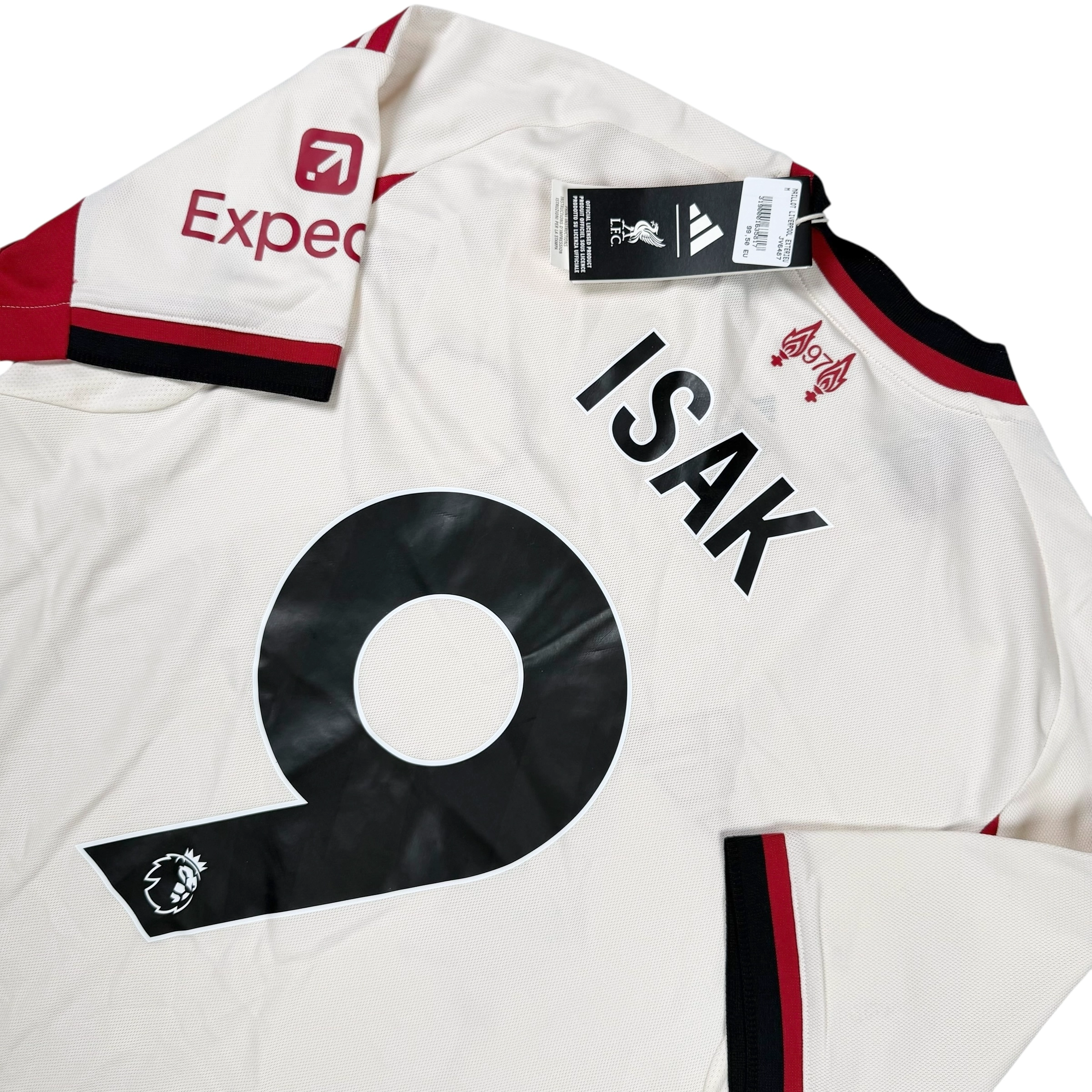 Note IFS : Neuf + étiquettes – Maillot extérieur des Reds de Liverpool tout neuf et floqué Isak.