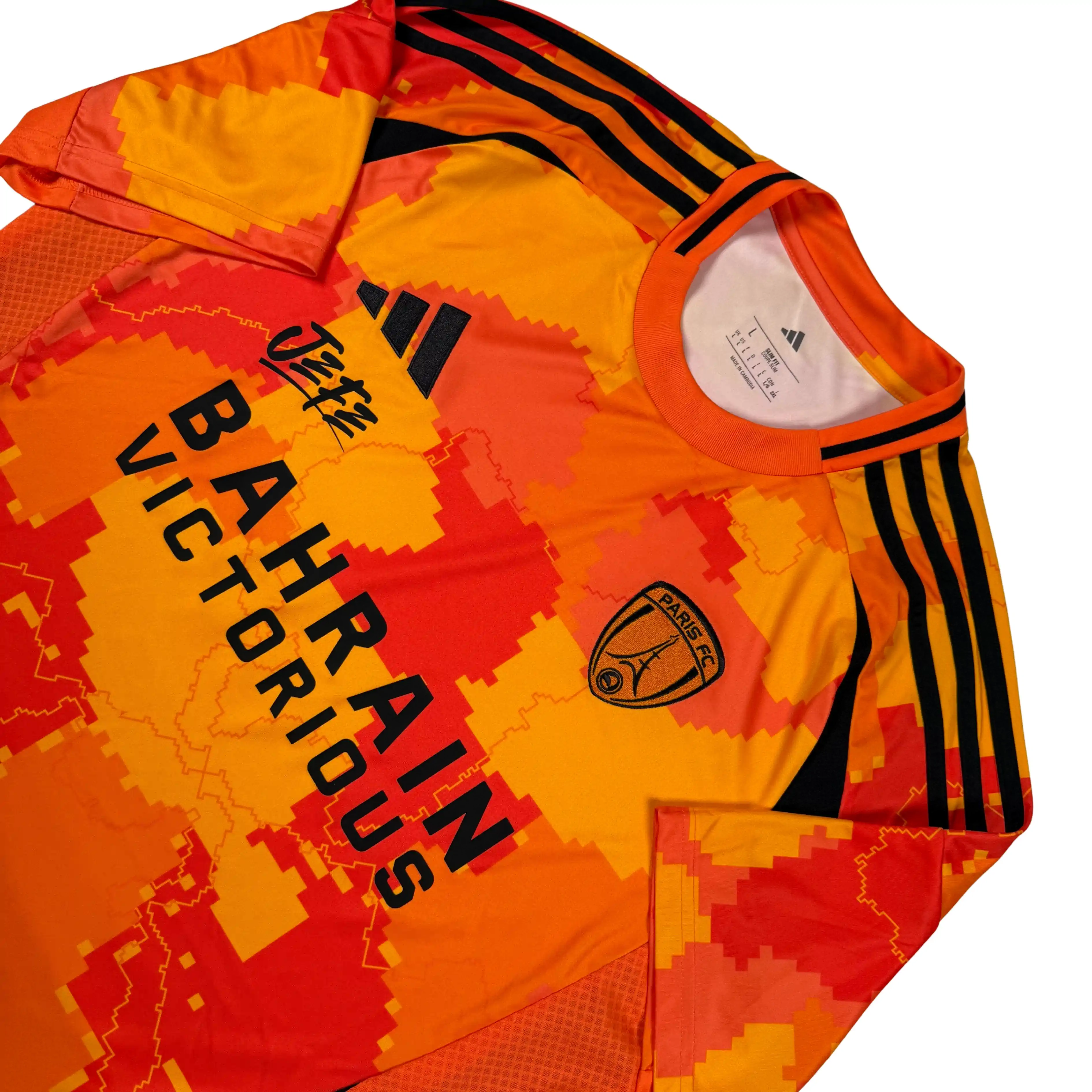 Note IFS : 10/10 – Maillot du Paris FC issu d’une collaboration exclusive avec Ninho. Le label Jefe est inscrit sur la face avant, aux côtés de Adidas. Un maillot pensé comme un symbole fort, inspiré des racines congolaises de l’artiste et de son attachement au Grand Paris, qui mélange football, culture et identité. Une pièce à part, chargée de sens.