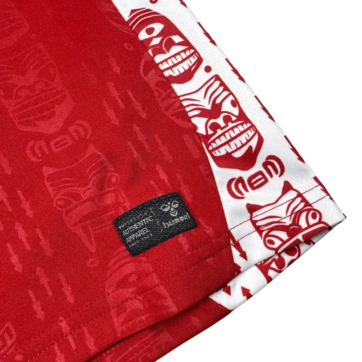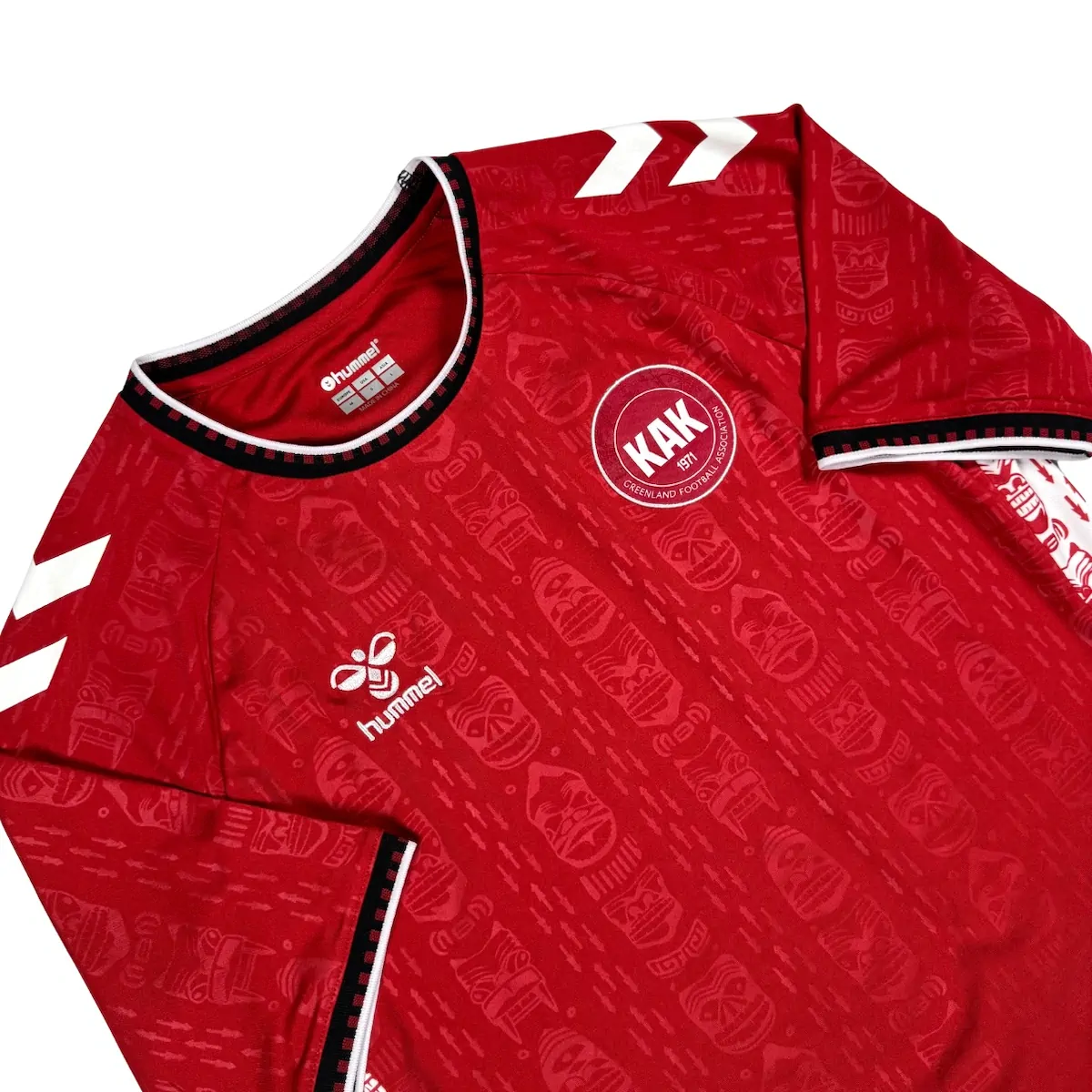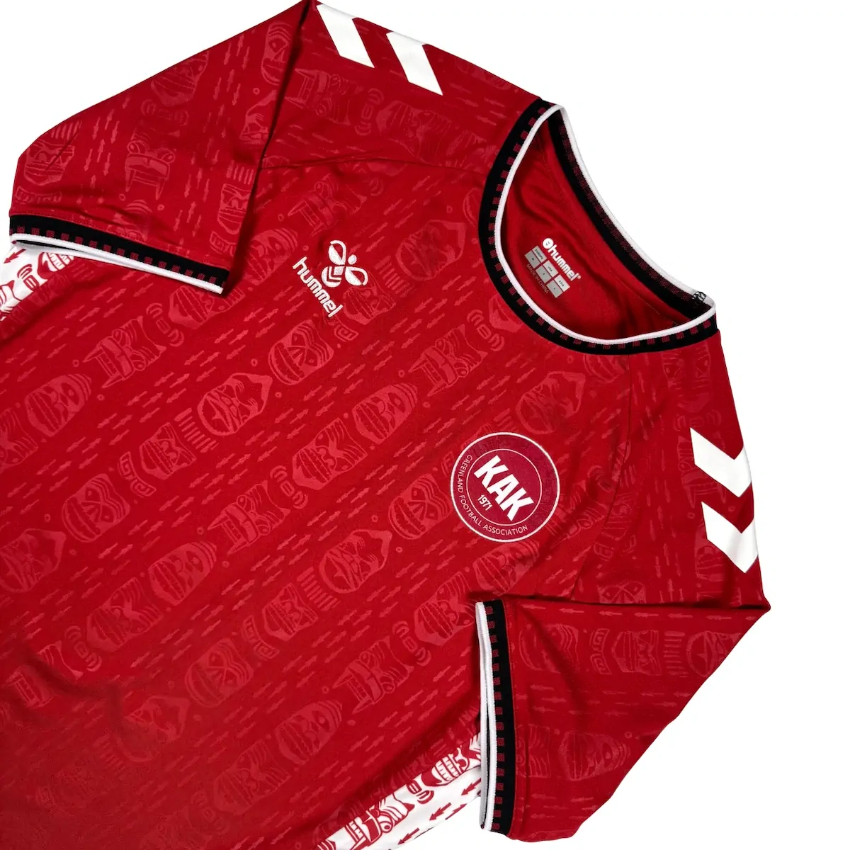 Note IFS : 10/10 – Maillot du Groenland 2025 avec un design inspiré de la culture inuit : on y retrouve des motifs traditionnels et symboles tirés de l’art et de la mythologie locale. Hummel a voulu rendre hommage à l’identité du pays en intégrant ces éléments directement dans le textile. Un maillot unique, chargé de sens, qui représente autant le football que les racines du Groenland.