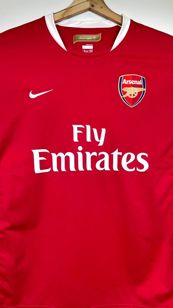 Note IFS : 9/10 – Excellent état. Très proche du 10/10, seul le « NikeFit » est effacé, un détail. Le maillot est quasi neuf ! Présence des matchs Premier League sur les manches. Le flocage est en feutrine, on adore ça chez IFS. Cesc Fabregas, Arsenal en Nike, première saison à l’Emirates Stadium … Iconic !
