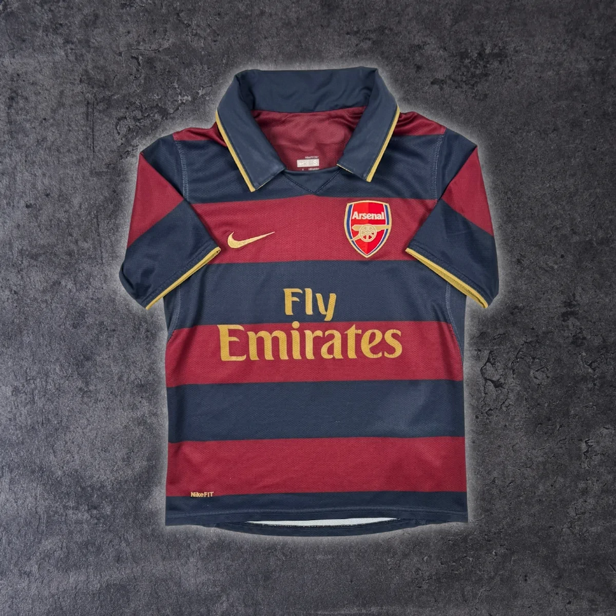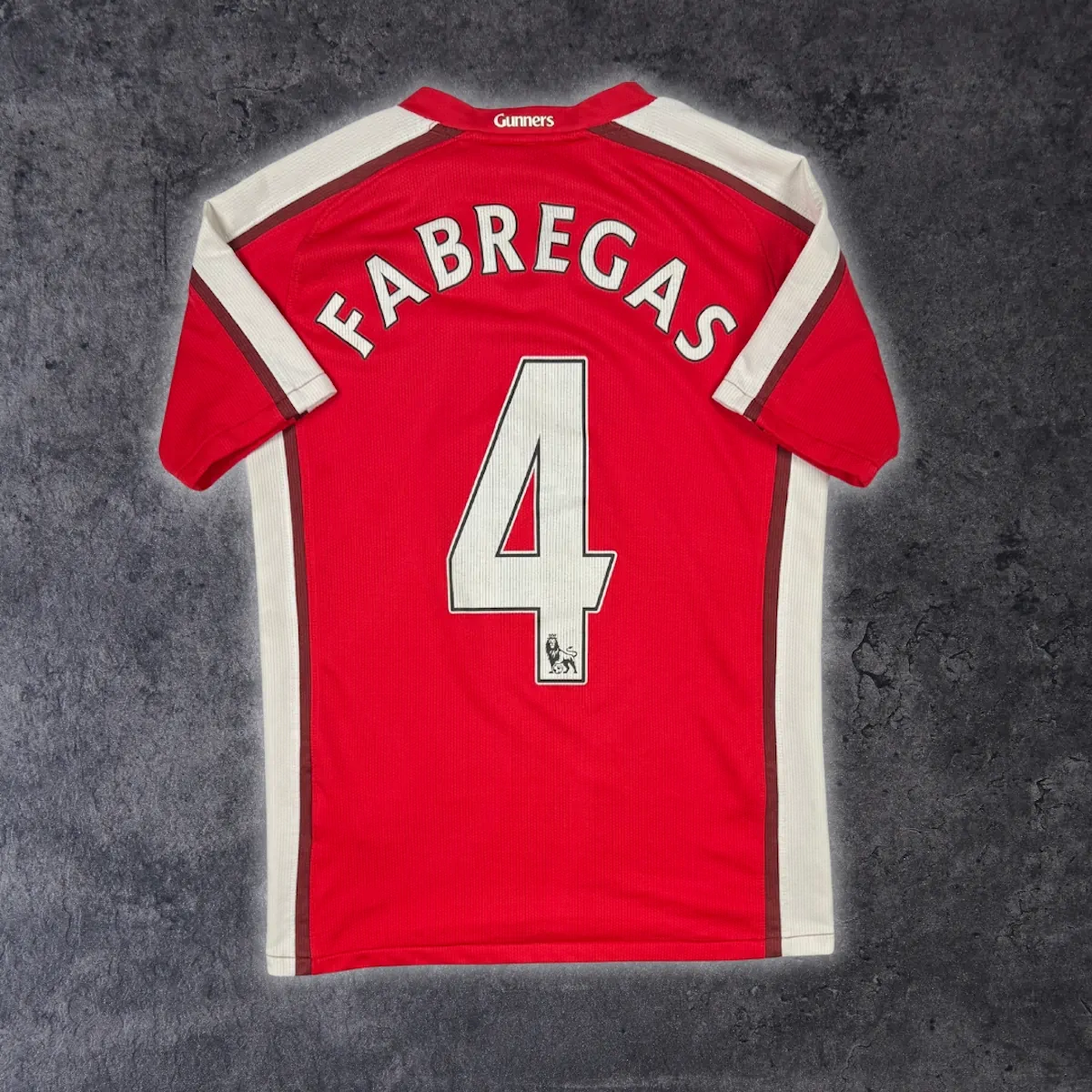 Note IFS : 9/10 – Quelques légers défauts à signaler comme les traces de la presse qui a servi à faire le flocage du maillot, certainement fait par après (voir photos). Rien de bien méchant ! Pour le reste, le maillot est dans un état impeccable avec ce magnifique mélange de bleus ! Ce maillot est historique car l’écusson du club a été légèrement modifié pour cette édition des 125 ans des Gunners (1886-2011) ! Floqué de la plus grande légende du club à ce jour !