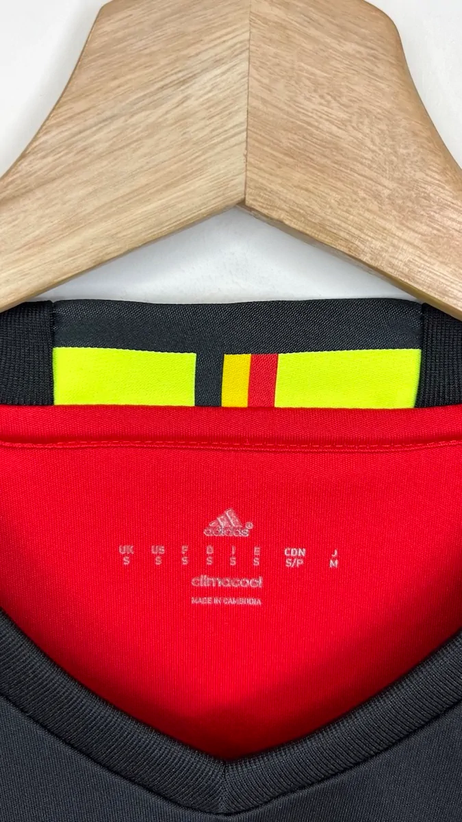 Note IFS : 9/10 – Excellent état pour ce maillot des Diables Rouges. Très très proche du 10/10 : une seule petite « gratte » à peine visible (voir photo). Superbe pièce par Adidas, simple et efficace.
