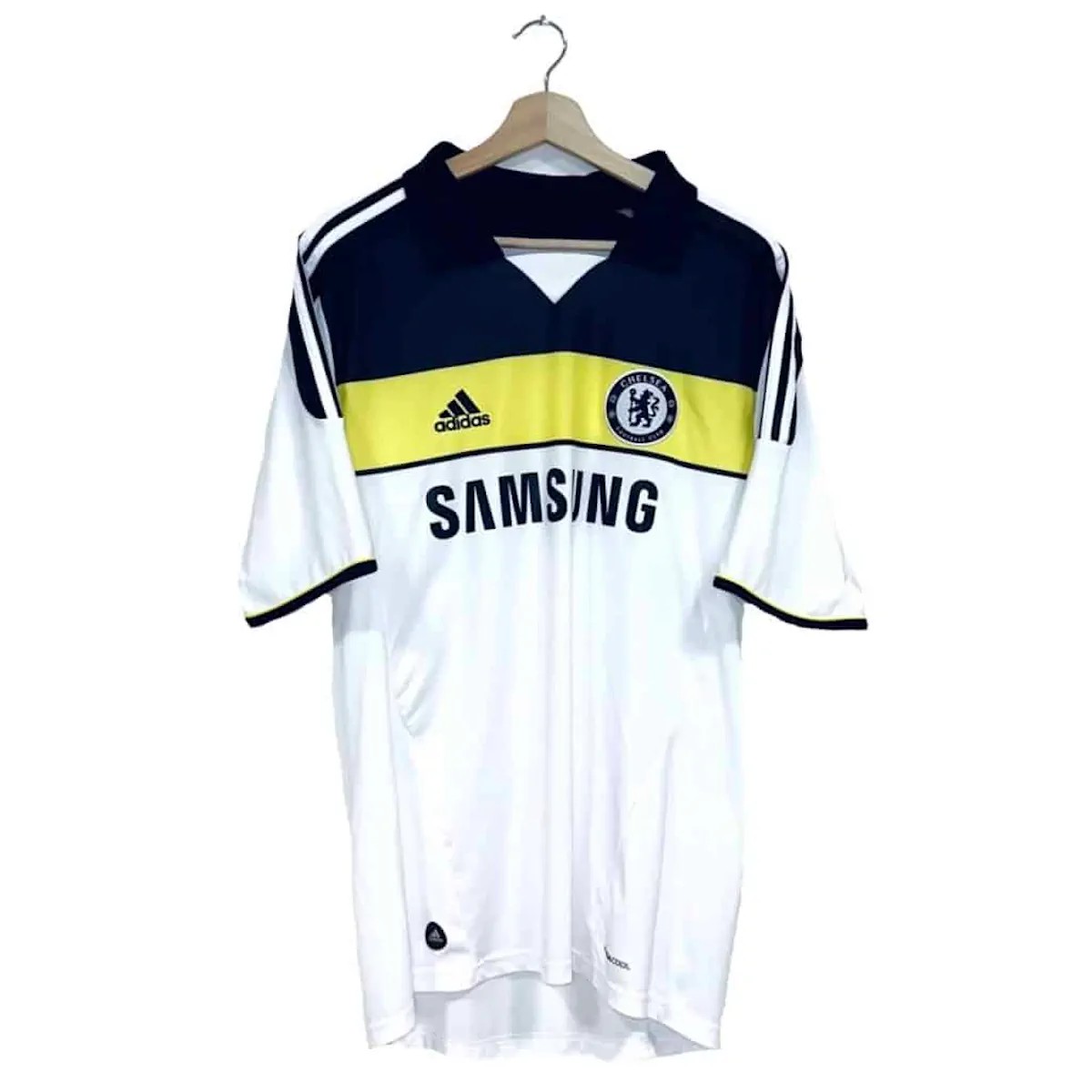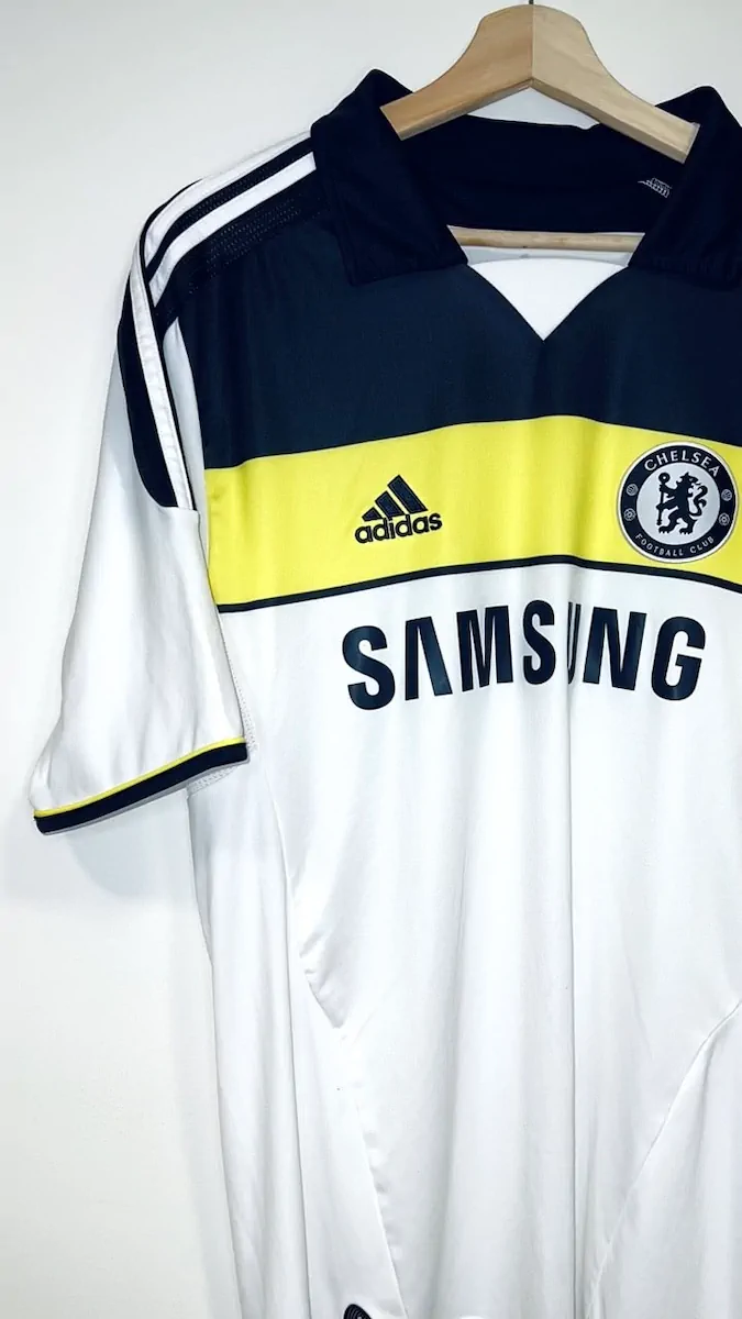 Note IFS : 9/10 – Très légères taches sur ce magnifique maillot blanc de Chelsea, à peine visible (voir photos). Le maillot reste dans un état impeccable !