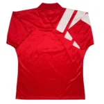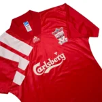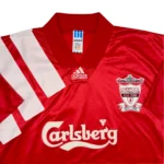 Maillot centenaire du club (1892-1992) en parfaite condition, pièce ultra rare pour tout fan des Reds. Sous les ordres de Graeme Souness, Liverpool boucle la saison sans titre malgré les 22 buts de Ian Rush. 6ème place en championnat, avec un effectif où l’on retrouve aussi Jamie Redknapp. Collector.