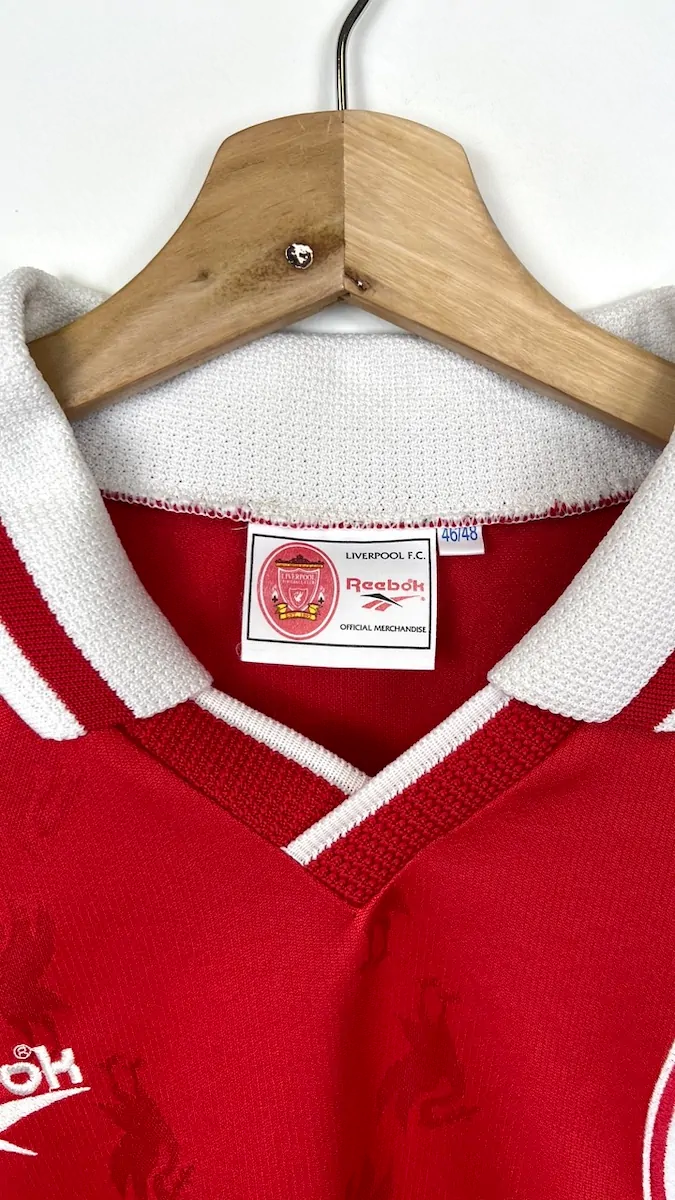 Note IFS : 9/10 – Excellent état pour ce rare maillot domicile de Liverpool en version manches longues ! Une petite tache et de légères bouloches sont à relever sur ce maillot, ça reste discret, ce qui justifie le 9/10 (voir photos). Le col, le sponsor Iconic Carlsberg que dire… Reebok dans les années 90 c’était quelque chose ! Bien vintage et rare comme on l’aime !