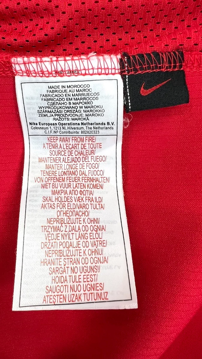 Note IFS : 9/10 – Excellent état. Quelques petites bouloches à peine visible sur ce magnifique maillot des Reds Devils (voir photos). Superbe état. Total 90 et Nike dans toute sa splendeur !