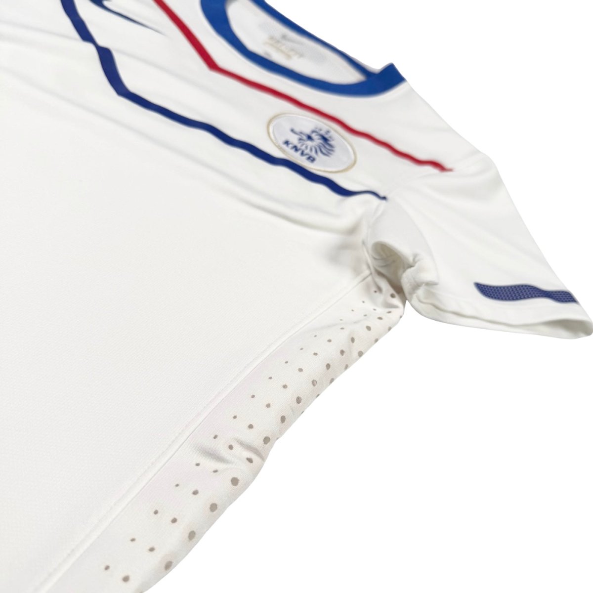 Note IFS : 9/10 - Excellent. Maillot rétro des Pays-Bas issu du stock pro de la sélection féminine. On reconnaît ces versions grâce à l’étiquette thermocollée à l’intérieur du maillot et à la coupe plus slim propre aux tailles femme. Une pièce rare, pas facile à trouver.