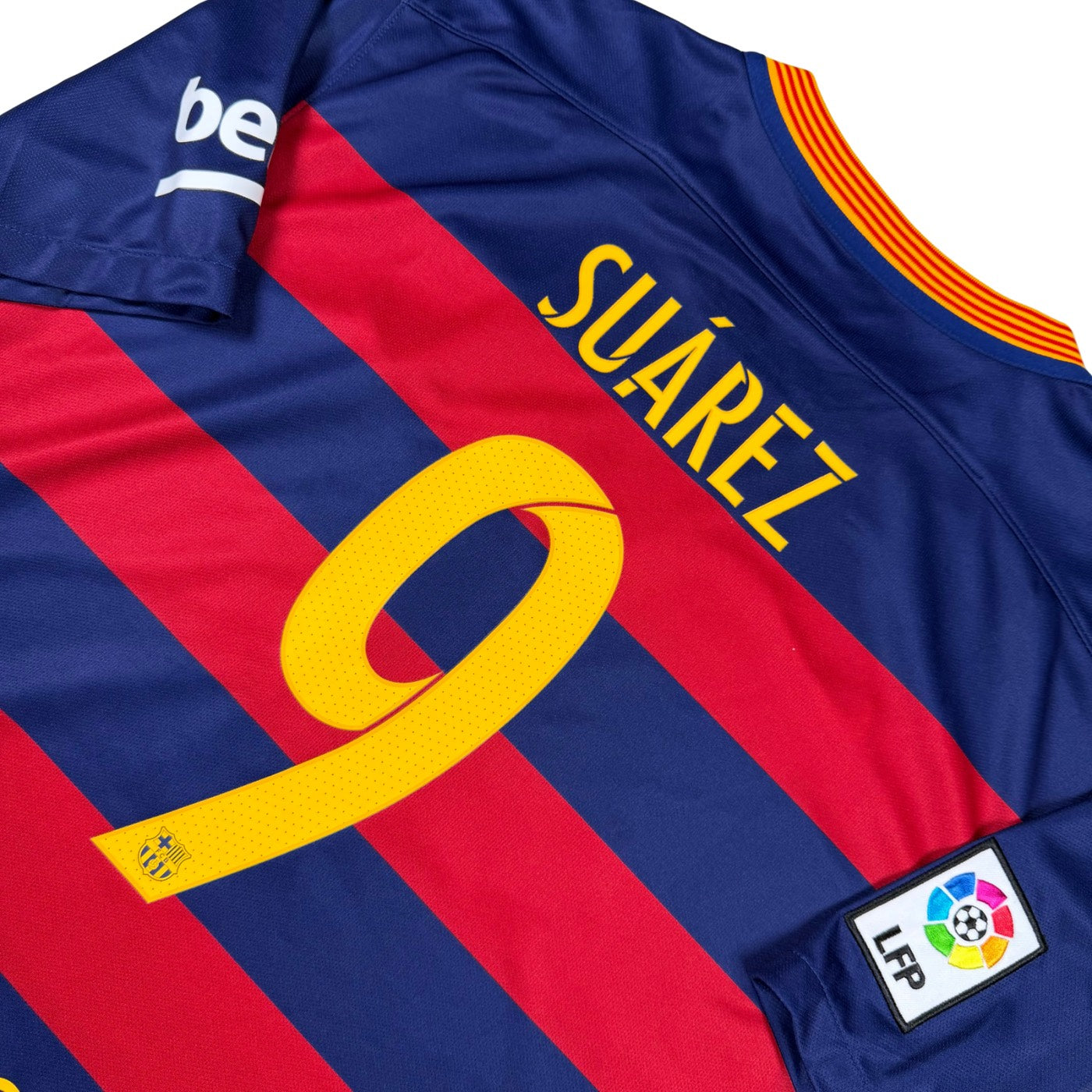 Note IFS : 10/10 - Maillot du Barça floqué de Luis Suarez avec patch World Champions sur le torse. Une pièce magnifique et complète !