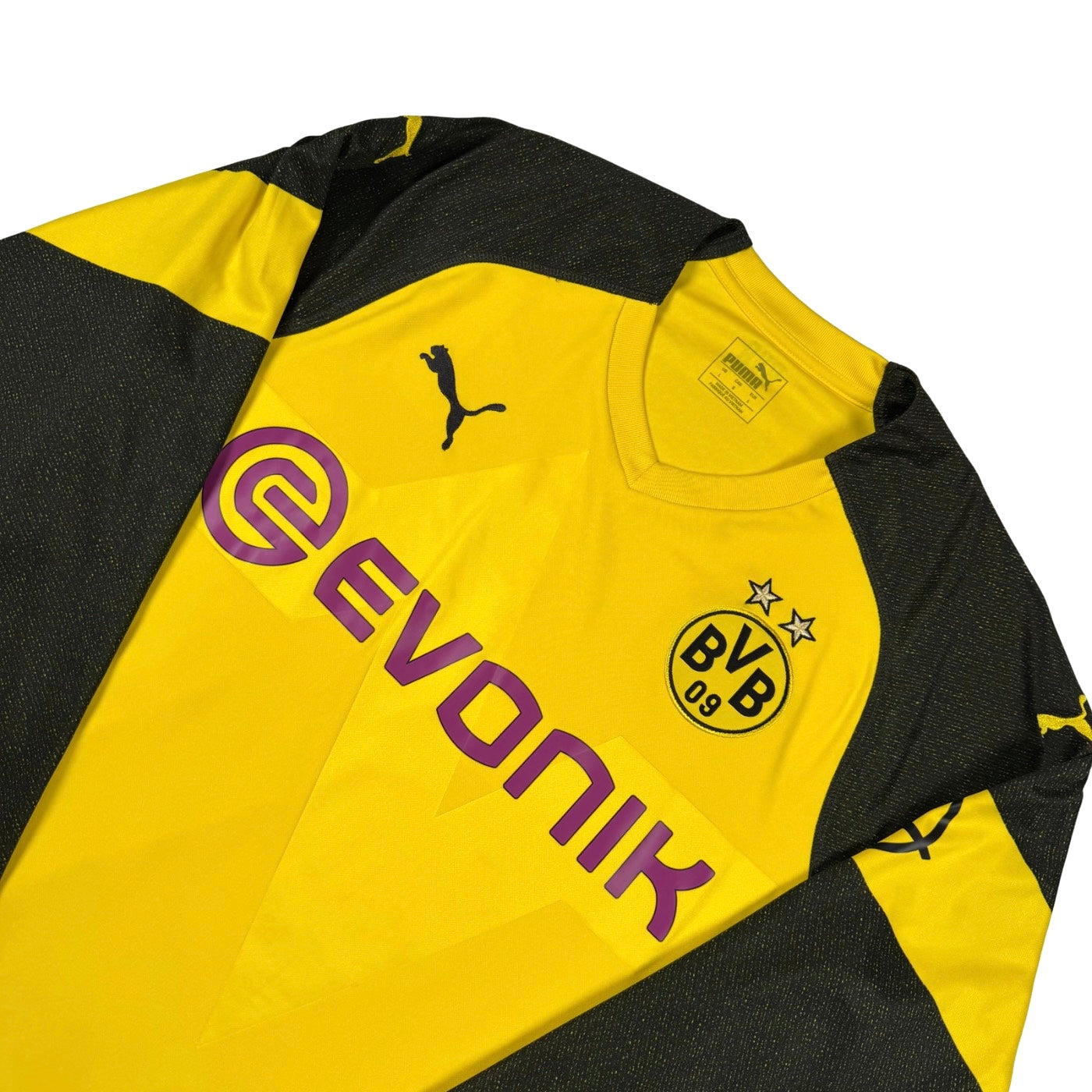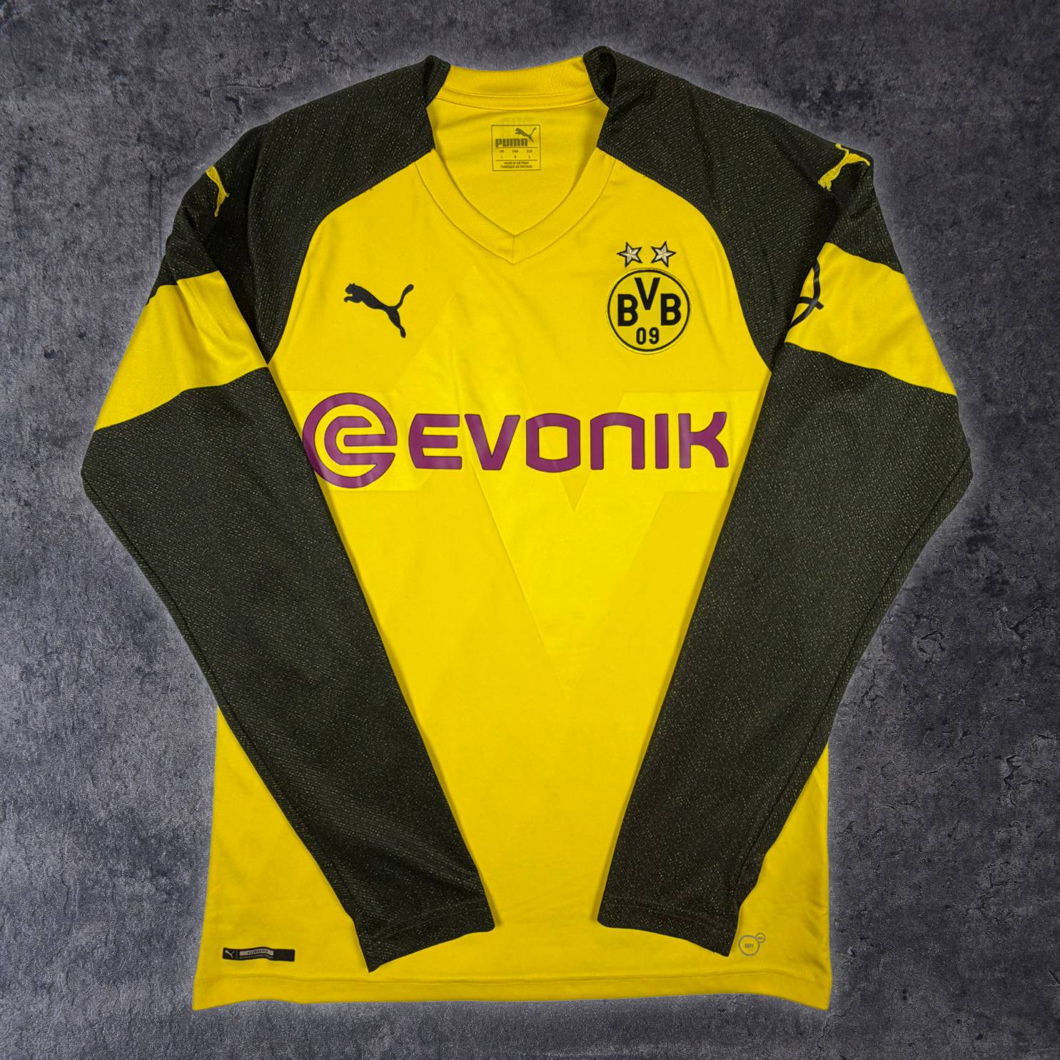 Maillot du Borussia Dortmund manches longues en superbe état. Le sponsor Evonik est comme neuf et les logos sont brodés, ce qui donne une très belle finition au maillot. Une configuration manches longues toujours sympa à trouver.