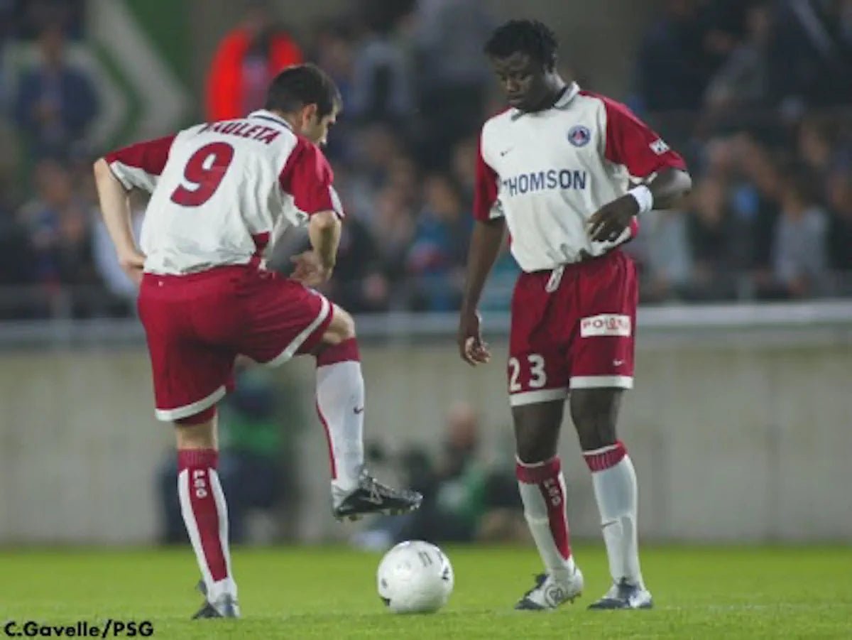 Note IFS : 9/10 - Excellent état, un mini point sur le sponsor nous rappel à quel point nous sommes à cheval sur la qualité car on a vraiment envie de donner un 10/10 à cette pépite qui ne comporte aucun défaut notable ! Une splendide pépite du PSG assez rare et qui nous rappel forcément Pedro Miguel Pauleta ! Nike, Paris, Thomson...