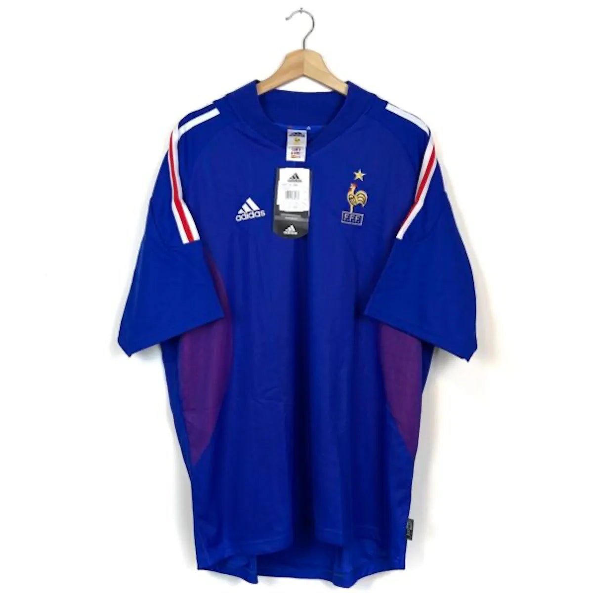 Note IFS : Neuf + étiquettes - Maillot vintage Adidas tout neuf ! Il s'agit d'une édition spéciale sortie en 2002 avec les signatures imprimées de joueurs tels que Zizou, Henry, Anelka, Vieira, Desailly ou encore Thuram. Une vraie pièce de collection pour tous supporters des Bleus !