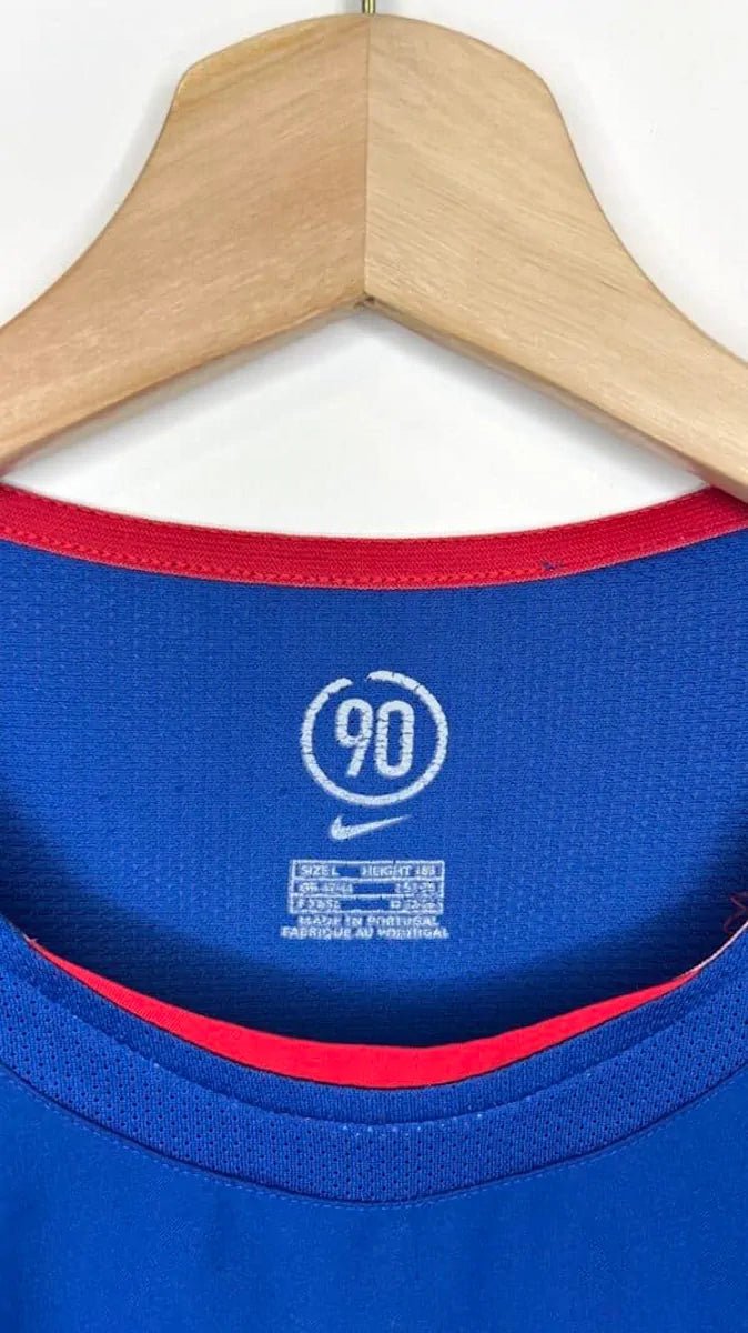 Note IFS : 9/10 – Excellent état, un minuscule trou à peine visible au dos est à relever ainsi qu'un léger défaut sur le "2" du sponsor (voir photos). Sponsor Iconic O2 en feutrine, design Nike Total 90 du début des années 2000… On pense forcément à Thierry Henry ! Magnifique !